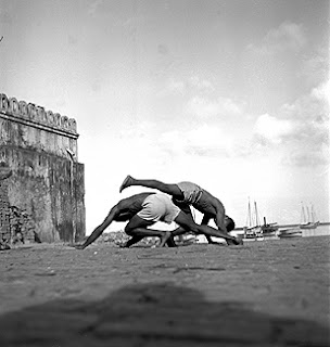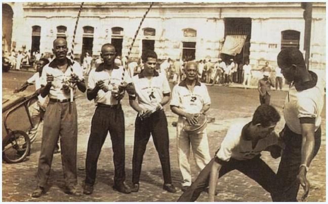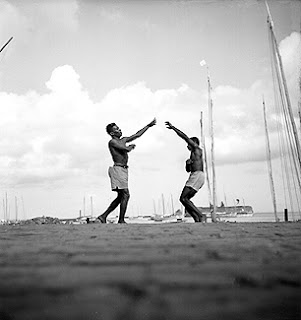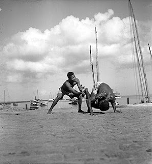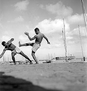 Série de photos de Pierre Verger réalisées entre 1946 et 1949 : capoeira sur les « cais », à côté du Mercardo Modelo :